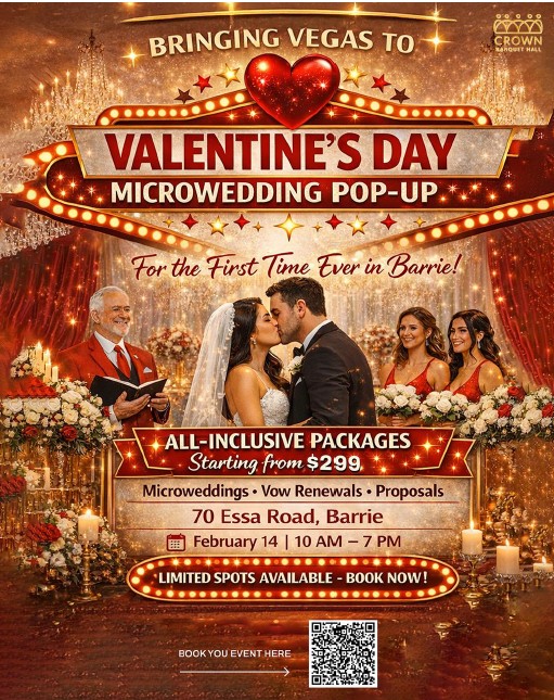 Valentine’s Day Microwedding Pop-Up Where 70 Essa Rd., Barrie Map When Feb 14/26 10:00 AM - Feb 14/26 07:00 PM Age All