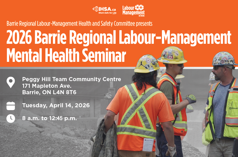 The Barrie Regional Labour-Management H&S Committee is partnering with the Infrastructure Health & Safety Association and hosting our 3rd Mental Health Event. Pre-register now to save your spot for this exciting half-day of learning and networking with industry experts and peers.